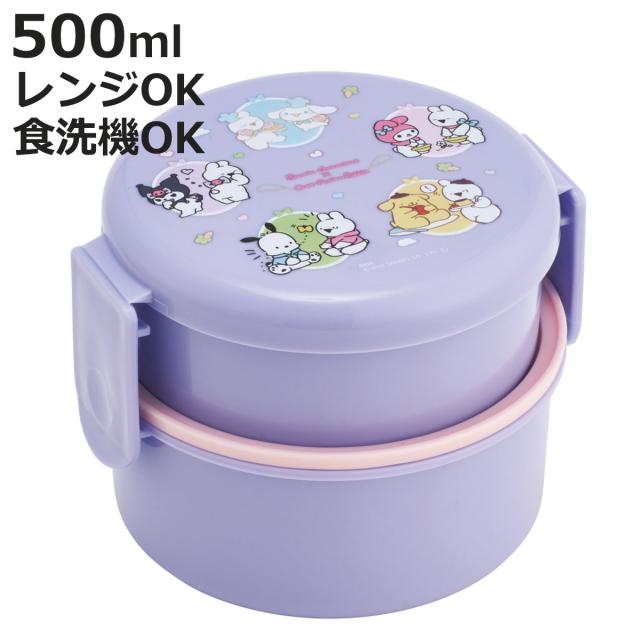 弁当箱 2段 500ml 抗菌丸型ランチBOX2段 サンリオキャラクターズXすこぶるウサギ ( サンリオ 食洗機対応 抗菌 丸型 ランチボックス レンジ対応 二段 日本製 レンジOK 食洗機OK お弁当 弁当 フォーク付き 銀 AG 抗菌加工 )