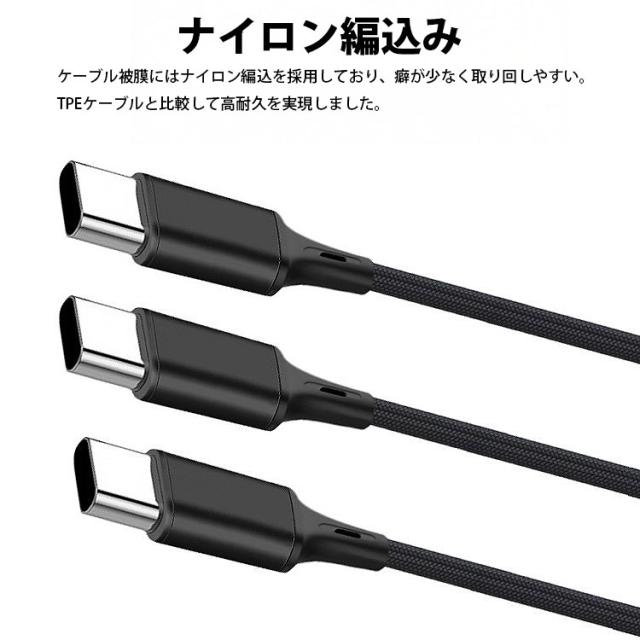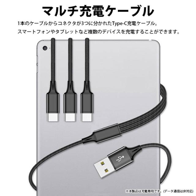 1本のケーブルからコネクタが3つに分かれたType-C充電ケーブル。