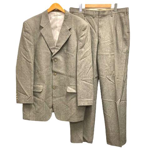 【中古】YUZAWAYA スーツ フォーマル シングル ウール ジャケット パンツ ストライプ ベージュ メンズ