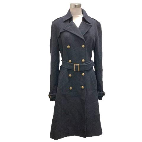 【中古】アトリエサブ ATELIER SAB コート ウール ダブル ロング ウエストベルト付 長袖 無地 11 紺 ネイビー レディース