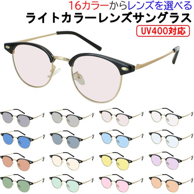 サングラス メンズ レディース UVカット 薄い 色 ライトカラーレンズ 紫外線99%カット サーモントブロー ボストン メタルフレーム jjk2209 鼻パッド付き グレー ブルー グリーン ブラウン ピンク イエロー 夜間運転 パープル ブルーライトカット UV400 紫外線対策