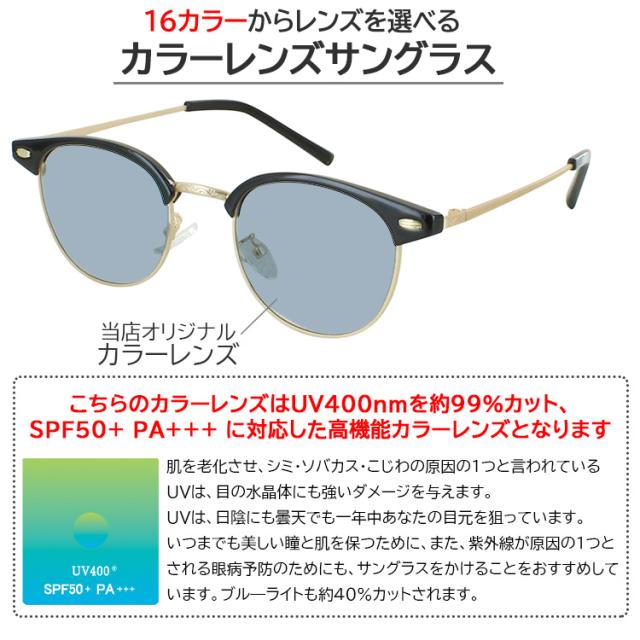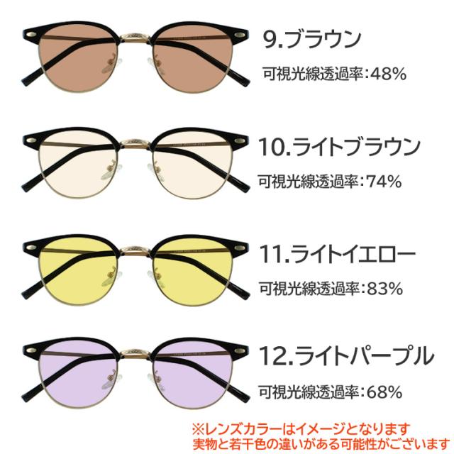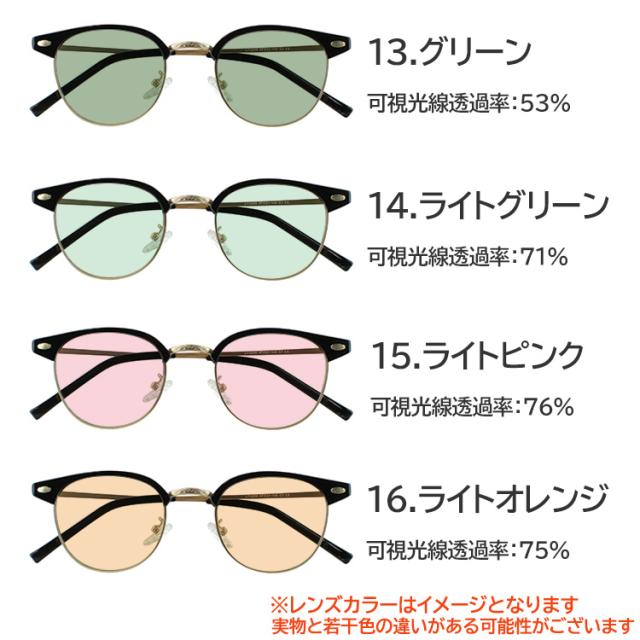 | 商品詳細 サーモントブロー ボストンタイプ jjk2209 メガネ フレームに、 オリジナルカラーレンズを組み合わせた、サングラスです。 こちらはメンズ レディース 男女兼用のユニセックスモデルです。 今、人気の高いサーモントブロー ボストンタイプのメガネ。 ・知的でクラシックな印象を与えながらも、ボストンの丸みで柔らかさをプラス ・個性的なデザインで、ファッションのアクセントになるアイウェアです 鼻パッドはクリングスタイプで調整が可能です。 こちらのカラーレンズはUV400nmを約99%カット、 SPF50+ PA+++に対応した高性能カラーレンズとなります ブルーライトも約40%カット レンズカラーは16色の中からお選びいただけます。 <レンズカラー:可視光線透過率 > 1.グレー:46% 2.スモーク:42% 3.ライトグレー:61% 4.ライトスモーク:69% 5.ブルー:44% 6.ブルースモーク:50% 7.ライトブルー:61% 8.クリアブルー:78% 9.ブラウン:48% 10.ライトブラウン:74% 11.ライトイエロー:83% 12.ライトパープル:68% 13.グリーン:53% 14.ライトグリーン:71% 15.ライトピンク:76% 16.ライトオレンジ:75% 薄い色のサングラスは、目元を隠すことなく、柔らかく自然な印象を与え、様々なシーンで活躍してくれます。 薄い色のサングラスの魅力 自然な視界: 濃い色に比べて視界が明るく、室内でも違和感なく着用できます。 軽やかな印象: 重厚感を与える濃い色とは対照的に、軽やかで爽やかな印象を与えます。 ファッション性の高さ: メガネのように気軽にコーディネートに取り入れられます。 | |