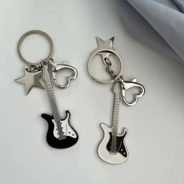小さなヴィンテージのパンクスタイルのエレキギター,ハート,スター,楽器のチャーム,音楽愛好家のためのキーホルダー,バッグギフト