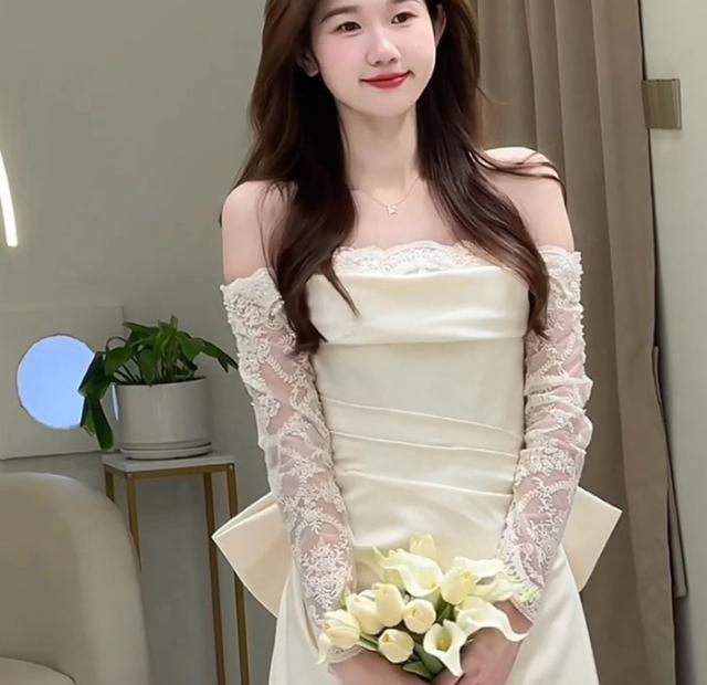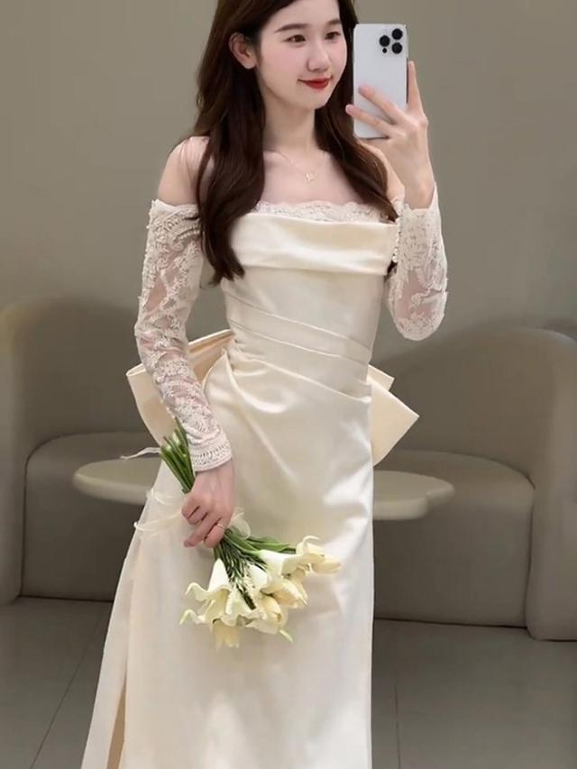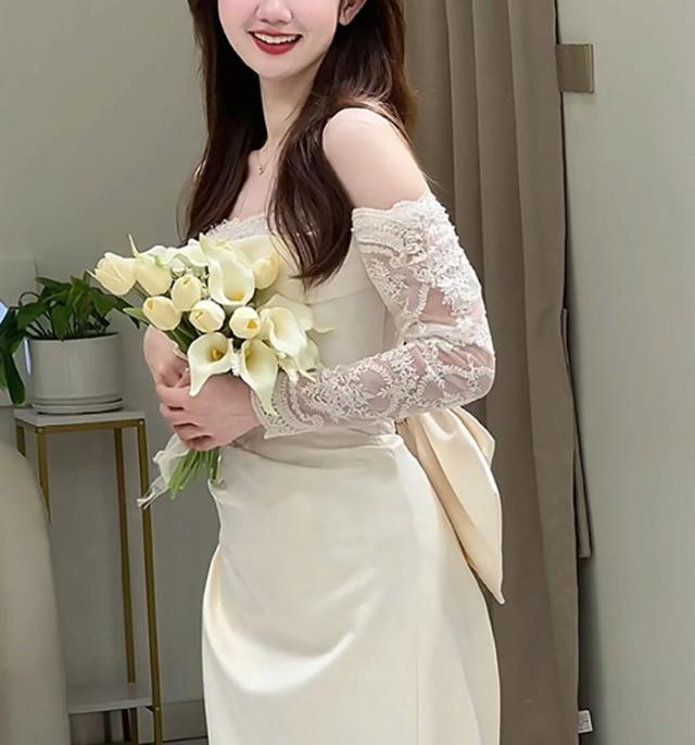 ウェディングドレス オフショルダー ビッグリボン レース 花嫁 白ドレス ワンピース プリンセス かわいい シンプル アンティーク クラシカル 結婚式 二次会 披露宴 前撮り 後撮り 撮影用 フォトウェディング ロング ba040n1n1m6