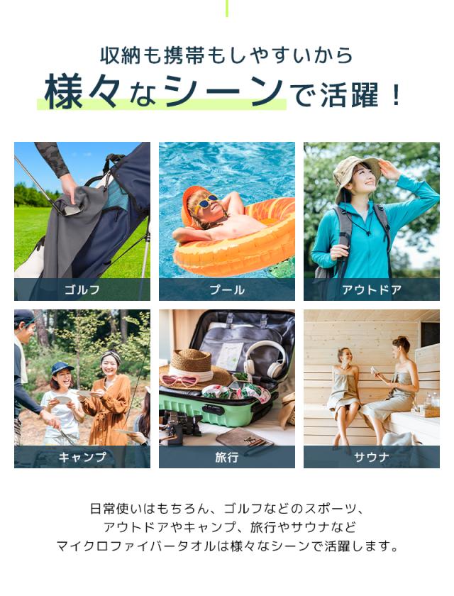 驚異の吸水性と速乾性!マイクロファイバー速乾タオルは、ミニバスタオル、フェイスタオルとしても軽量でコンパクトに収納でき、持ち運びも便利。洗車から日常の使い勝手まで万能に対応!