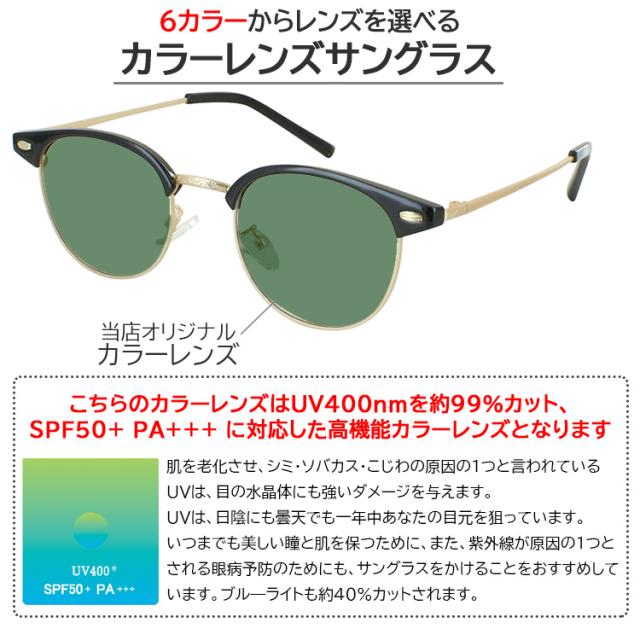 | 商品詳細 サーモントブロー ボストンタイプ jjk2209 メガネフレームに、 オリジナルカラーレンズを組み合わせた、サングラス こちらはメンズ レディース 男女兼用のユニセックスモデルです 今、人気の高いサーモントブロー ボストンタイプ ・知的でクラシックな印象を与えながらも、ボストンの丸みで柔らかさをプラス ・個性的なデザインで、ファッションのアクセントになるアイウェアです 鼻パッドはクリングスタイプで調整が可能です。 こちらのカラーレンズはUV400nmを約99%カット、 SPF50+ PA+++に対応した高性能カラーレンズとなります レンズカラーは6色の中からお選びいただけます。 <レンズカラー:可視光線透過率 > 1.グレー:13% 2.スモーク:13% 3.ブルースモーク:16% 4.グリーン:16% 5.グリーンスモーク:13% 6.ブラウン:11% | |