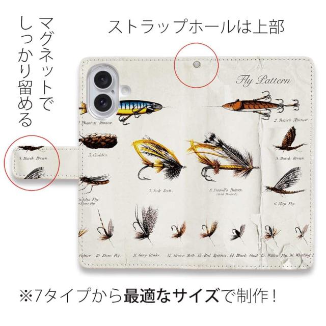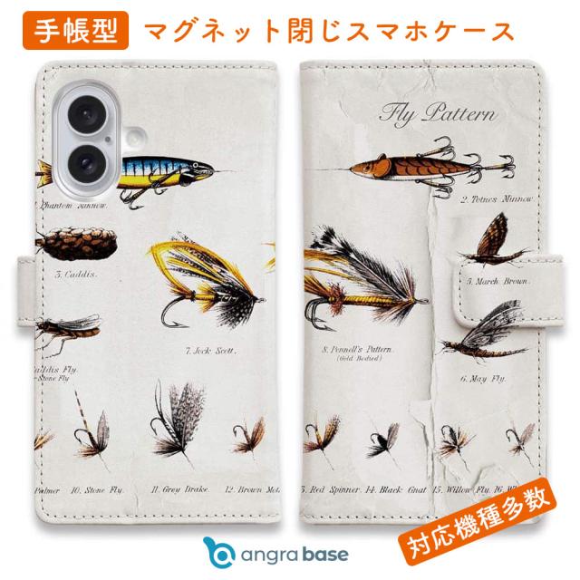 スマホケース 手帳型 カード収納 マグネット iPhone17 Pro Max iPhone Air iPhone16e iPhone16 Pro Max 16 Plus 15 Pro Max Xperia 10 VII Galaxy AQUOS ARROWS Pixel10 XL 釣り 魚 ルアー フライパターン