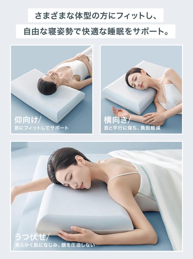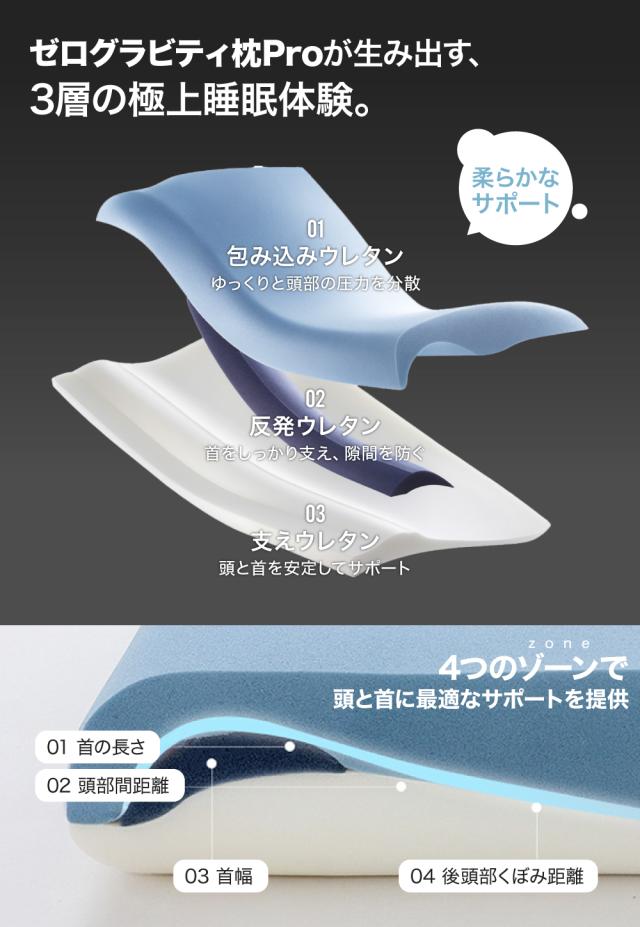 ゼログラビティ枕 まくら Pro 横向き寝用枕 うつぶせ寝 肩こり 首こり 快眠枕 低い 柔らかい 低反発枕 いびき対策 安眠枕 寝返りしやすい 眠れる フィット 蒸れない 負担軽減 睡眠効果 耳が痛くならない 体圧分散枕 通気性 頸椎サポート 枕カバー付き ギフト包装