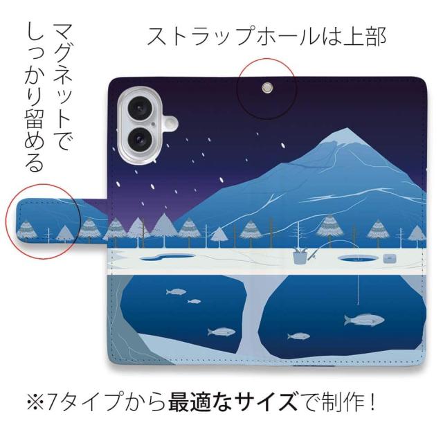 スマホケース 手帳型 カード収納 マグネット iPhone17 Pro Max iPhone Air iPhone16e iPhone16 Pro Max 16 Plus 15 Pro Max Xperia 10 VII Galaxy AQUOS ARROWS Pixel10 XL 釣り 魚 ルアー 送料無料 クリスマス前の魚釣り