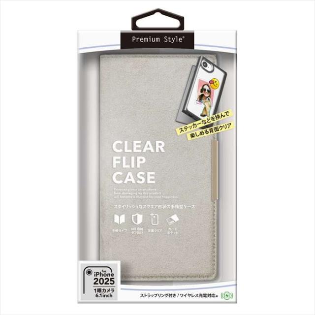 ■商品名:iPhone 16e ケース カバー クリアフリップケース スエード調 グレー 6.1inch 1眼カメラ用