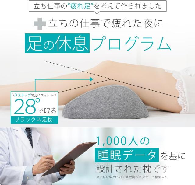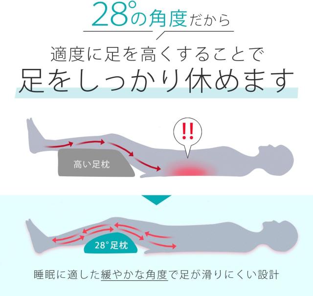 立ち仕事で疲れた夜にぴったりの足の休息28°足枕です