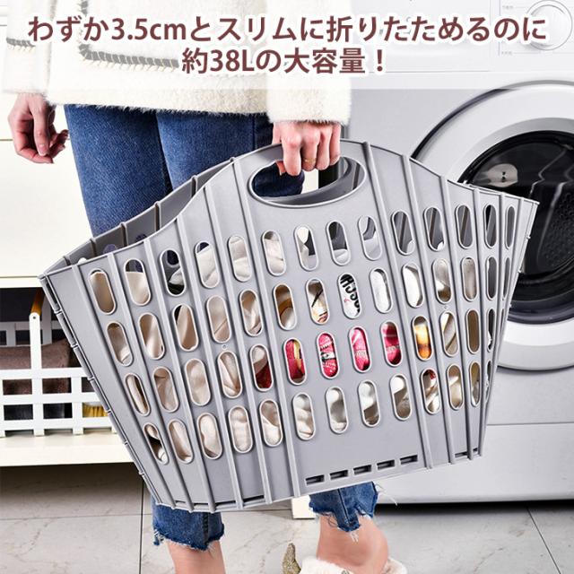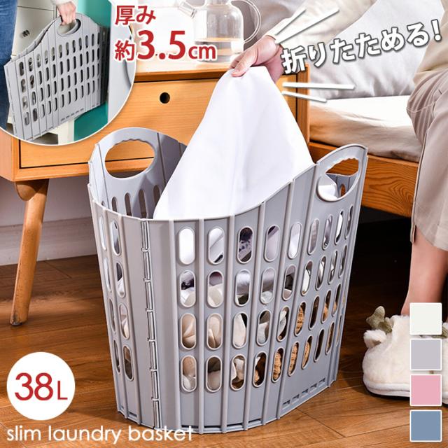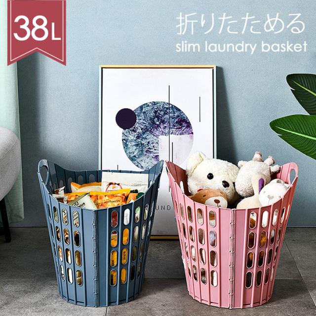 新作 折りたたみ スリム ランドリーバスケット 38L 洗濯かご 洗濯カゴ 洗濯物入れ ランドリー 洗濯 バスケット かご カゴ 収納バスケット 大容量 軽量 洗濯機横 折り畳み 収納 省スペース おしゃれ 新生活