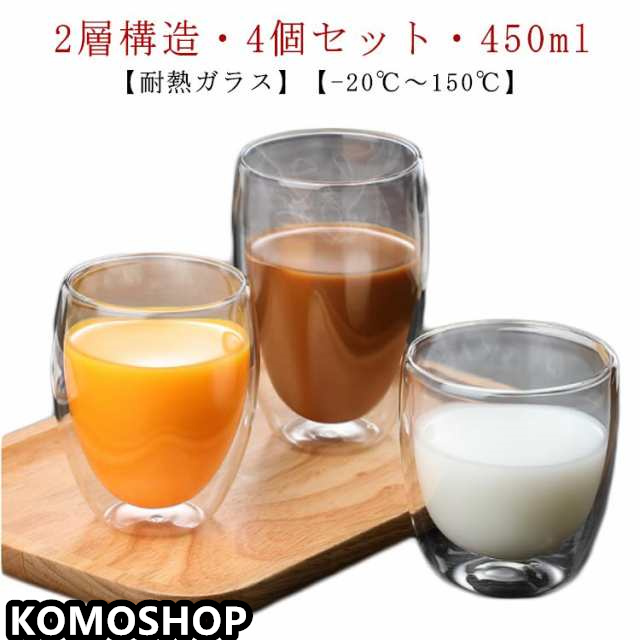 北欧 【4個セット】ダブルウォールグラス お中元 お茶カップ 耐熱ガラス ガラスカップ コップ おしゃれ 保温 450ml 二重グラス ティーカップ 結婚祝い グラス 2層構造 お祝い ホウケイ酸ガラス 誕生日 コーヒーカップ ギフト 新築祝い タンブラー 保冷