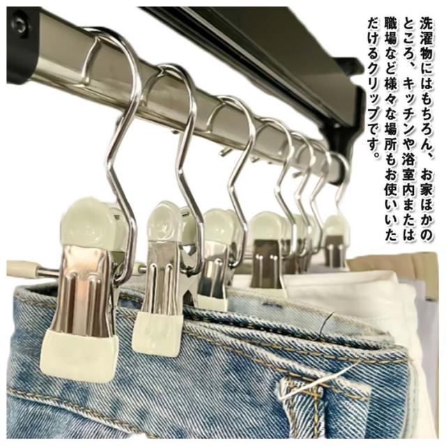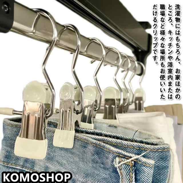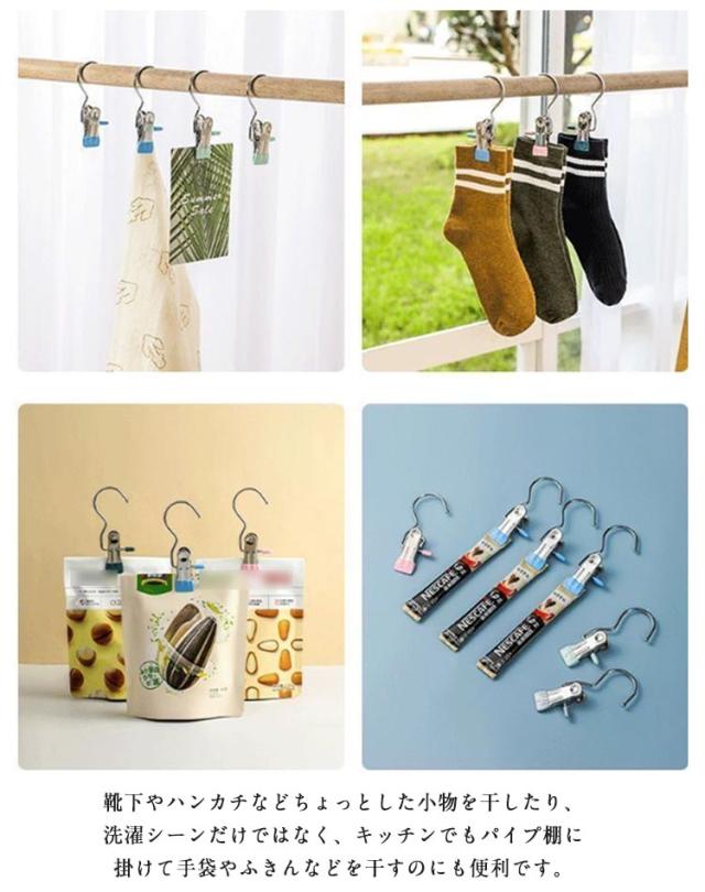 | 洗濯物にはもちろん、お家ほかのところ、キッチンや浴室内または職場など様々な場所もお使いいただけるクリップです。 フック付きなのであらゆる場所に掛けて使用できます。 靴下やハンカチなどちょっとした小物を干したり、洗濯シーンだけではなく、キッチンでもパイプ棚に掛けて手袋やふきんなどを干すのにも便利です。 アイデア次第で、さまざまなシーンでご活用いただけます。 洗濯ピンチの開け口ではゴムカバーされて、鋭い挟み跡を緩和させてたり、滑り落ちを軽減させてたりしているので、洗濯物に掴み痕が残らない。 ステンレス製ですので丈夫かつ清潔、衣類を傷つけにくい、水のかかる所でも安心でお使い頂けます。 | |