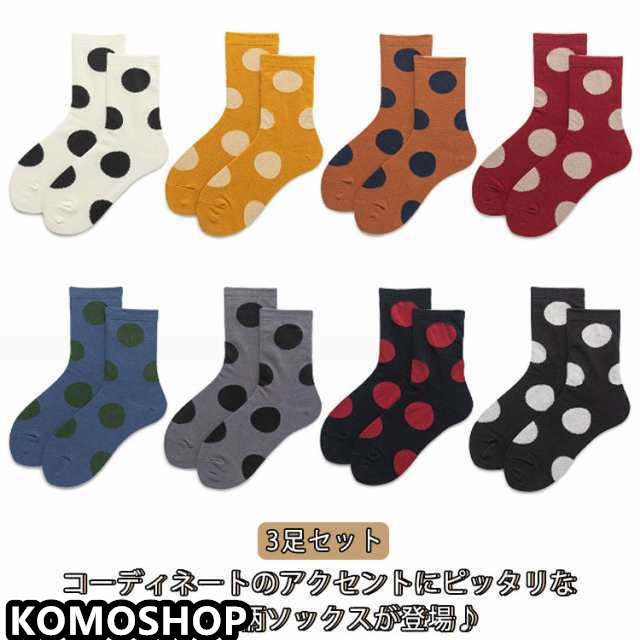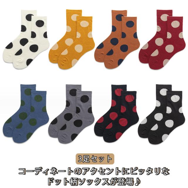 3足セット 靴下 レディース ソックス くつ下 春 秋 冬 クルーソックス かわいい 可愛い ドット柄 水玉 綿 女の子 女子 婦人用 女性 くつ