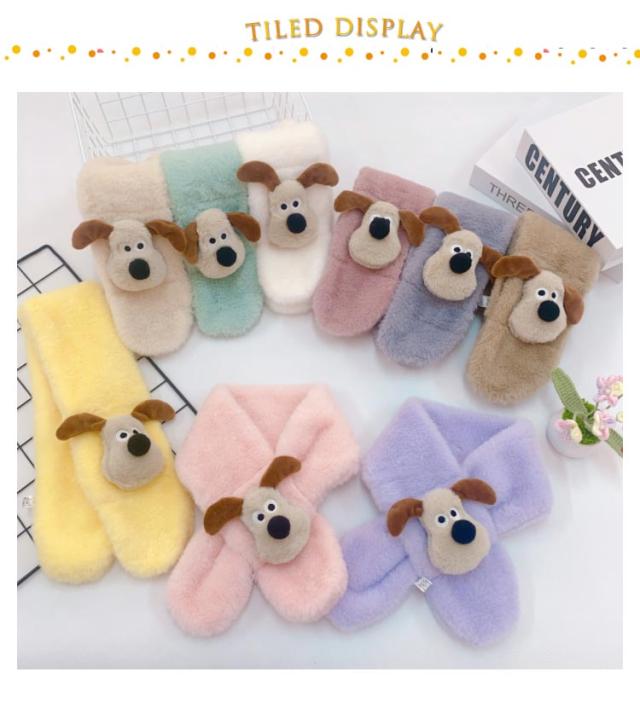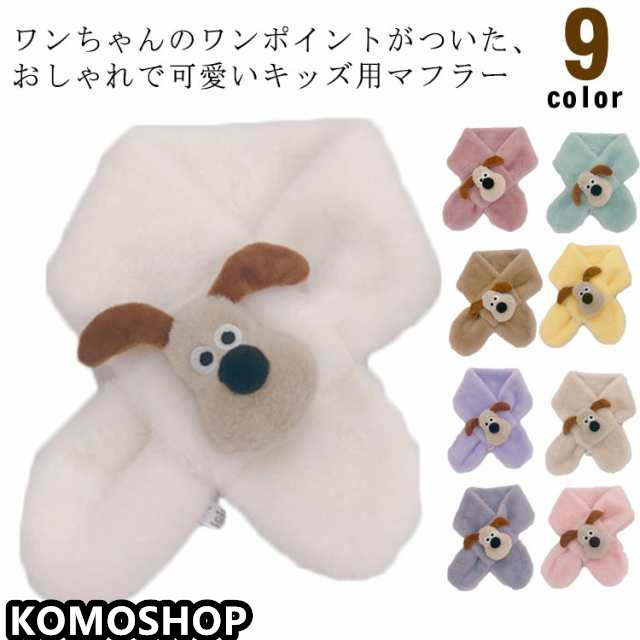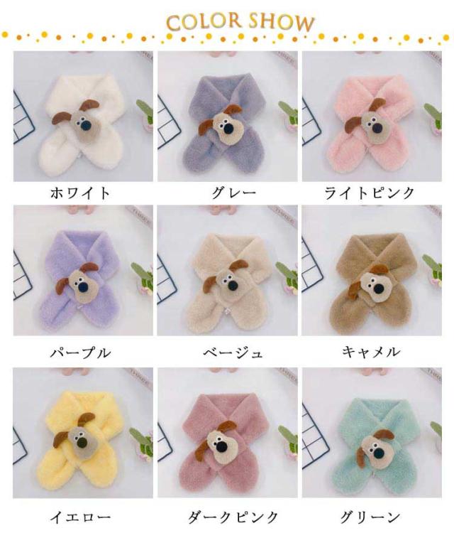 | 9色 ワンちゃんのワンポイントがついた、おしゃれで可愛いキッズ用マフラー | |