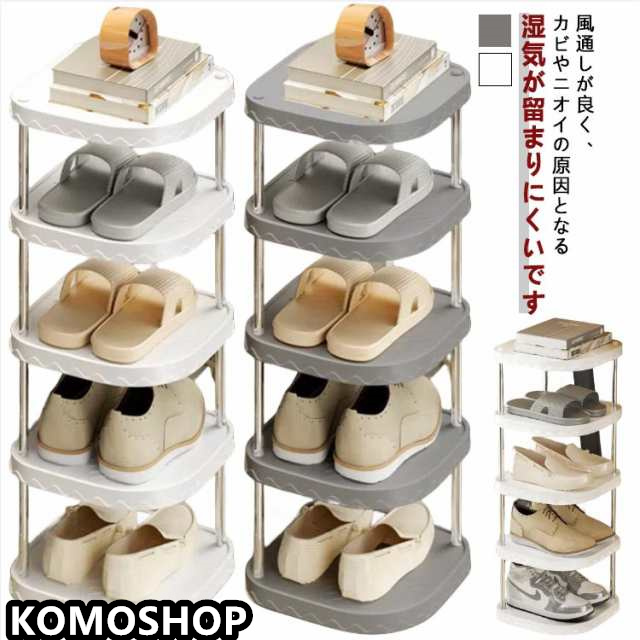 | 省スペース設計のシューズラック 靴箱、散らかりがちな靴類を一カ所にまとめてスッキリと綺麗な玄関に 風通しが良く、カビやニオイの原因となる湿気が留まりにくいです 蒸れやすい脱ぎたての靴も気にせずに安心して収納することができます 工具不要で各パーツを差し込むだけで組み立てられます。組み立てや工具が苦手な方も安心です | |