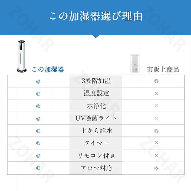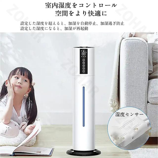 - 上から給水なので、給水しやすく、水漏れの心配がないです。8リットルの大容量給水タンクで、給水の頻度も少なく、噴霧量3段階。音も静かです。 湿度と温度が交互に表示されて室内の状態が分かりやすいです。背...