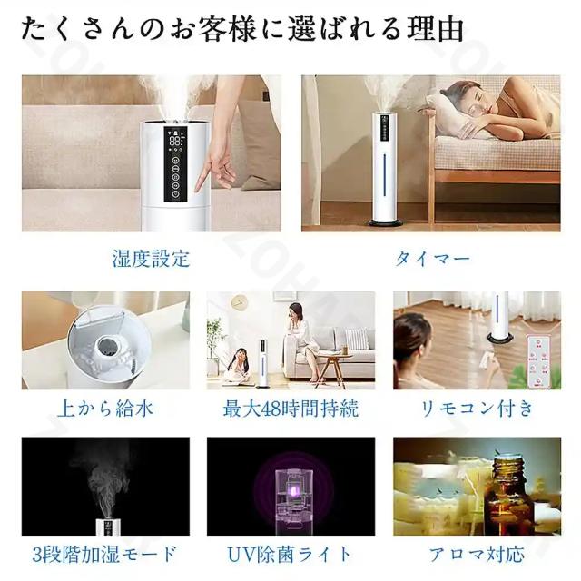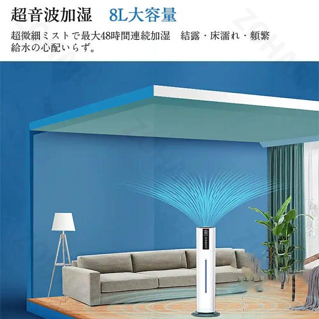 ★2年間保証★加湿器 大型 超音波式 8L 大容量 UV除菌ライト 空気加湿機 静か おしゃれ アロマ 上から給水 三段階霧量調整 口360°回転 空気清浄 強力 湿度 タイマー リモコン 40畳 乾燥対策 省エネ オフィス 静音 ギフト 2025 定時 長時間 アロマ対応 プレゼント