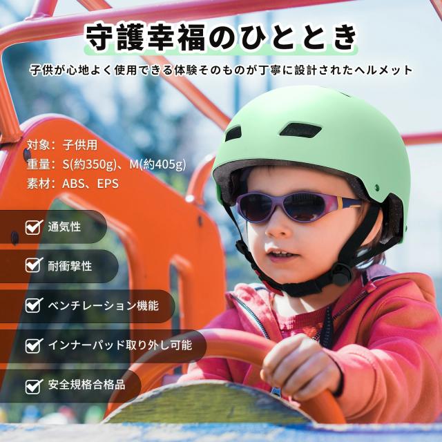 ヘルメット 子供用 通気 【CE安全規格】 サイズ調節可能 軽量 耐衝撃 S/Mサイズ(頭囲51~58cm) 3D保護クッション 洗濯可能 スポーツヘルメット 自転車ヘルメット バイク スキー スケートボッド