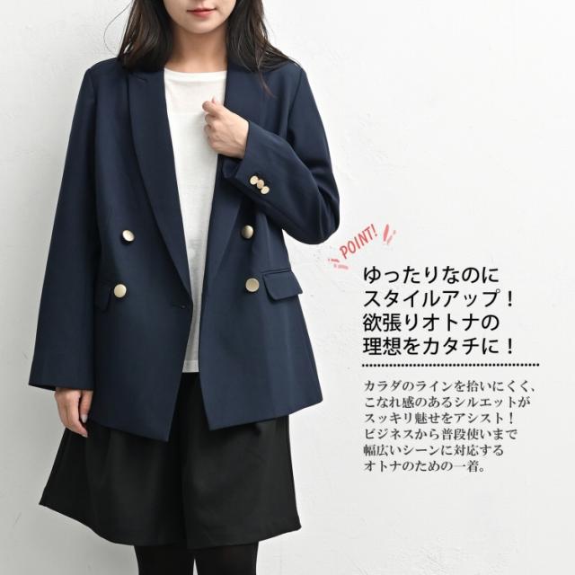 送料無料※沖縄/北海道対象外 大きいサイズ レディース テーラードジャケット 長袖 ダブルボタン パネル切替 オフィス アウター sfm M/LL/3L/4L/5L ゆったりサイズ ぽっちゃり女子 プラスサイズ