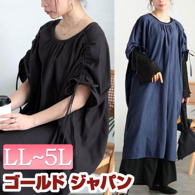 春新作 大きいサイズ レディース ワンピース コットンリネン肩ドロストワンピース ワンピ 半袖ワンピース 半袖 5分袖 ロング ドロスト ドルマン ギャザー コットン リネン ボタン ストレッチ ゆったり 春服 夏服 秋服 LL 2L 3L 4L 5L ブルー チャコール ゴール イベントセール