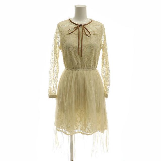 【中古】未使用品 メゾンドライラ Maison de Lila ワンピース 膝丈 総レース ライトベージュ /ES ■OS レディース