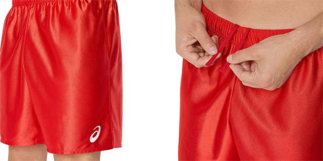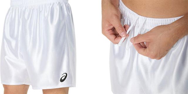 光沢のあるトリコット素材の股下15cm(サイズL)のゲームパンツ