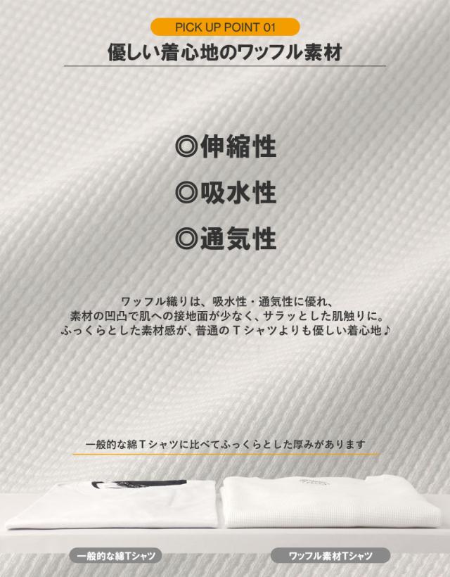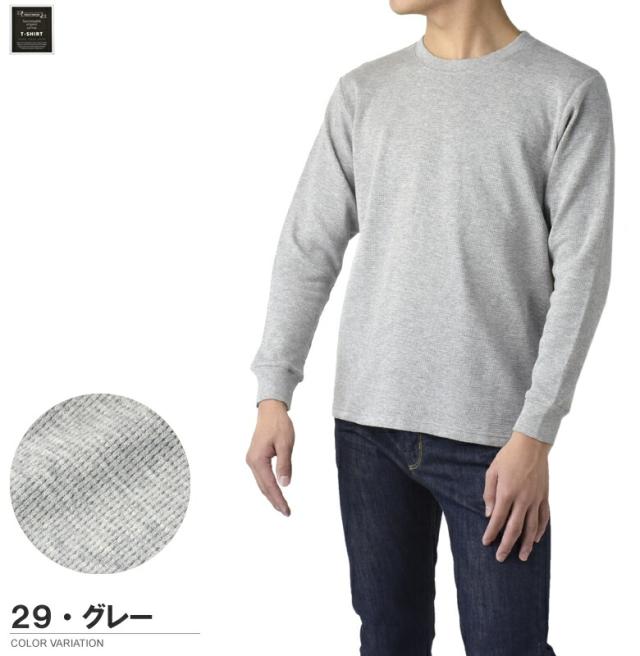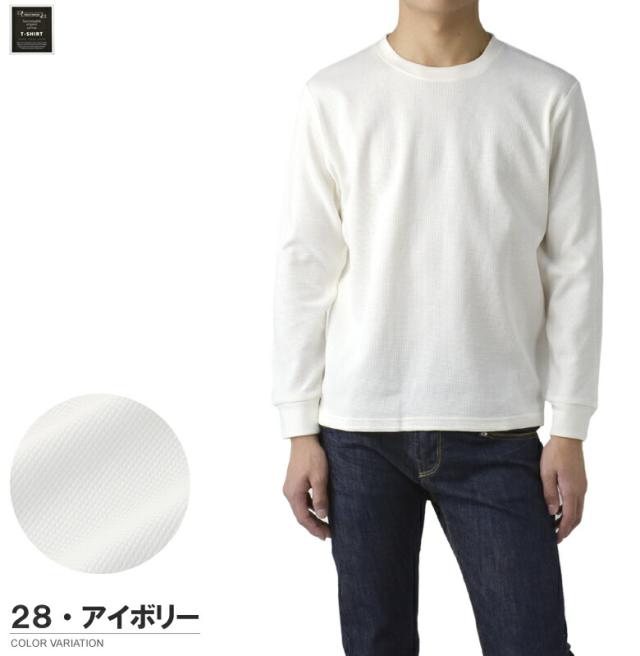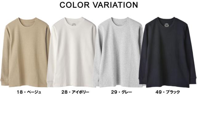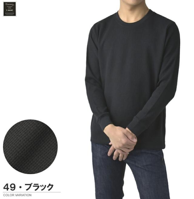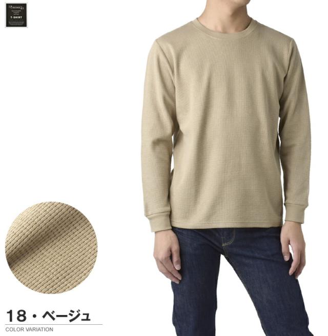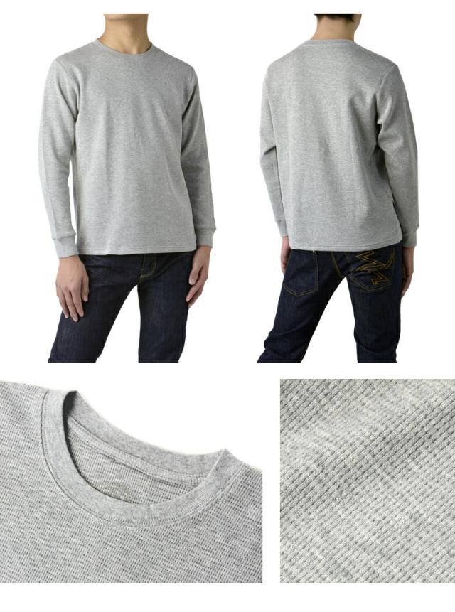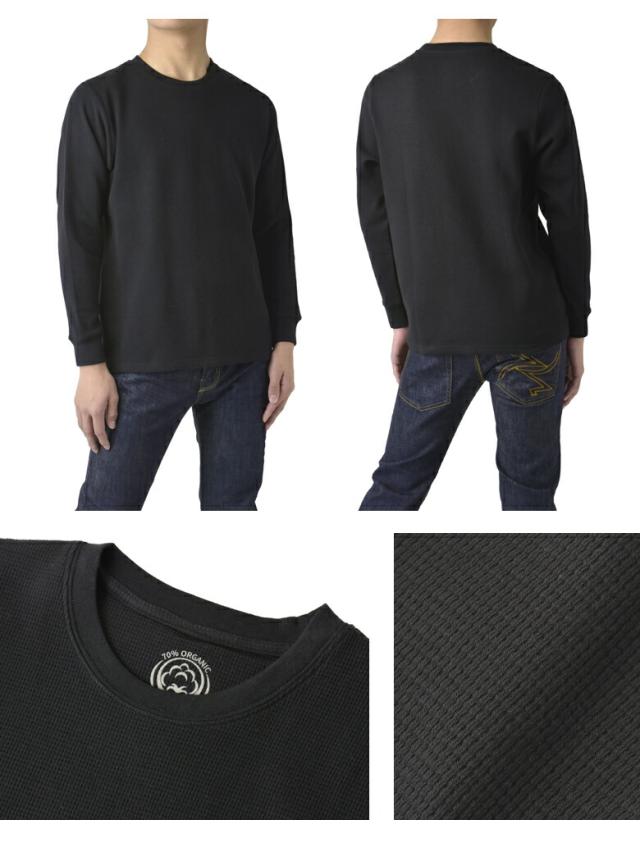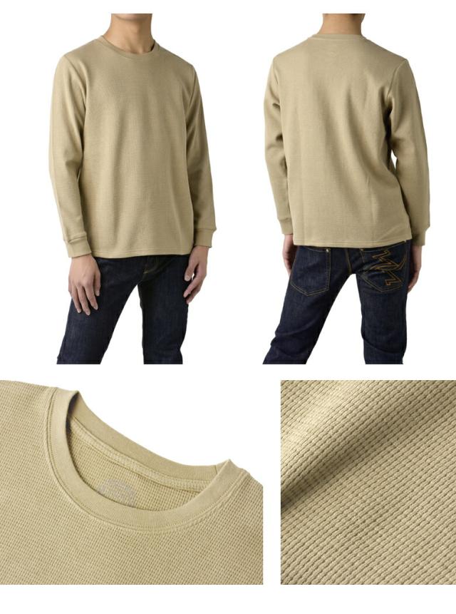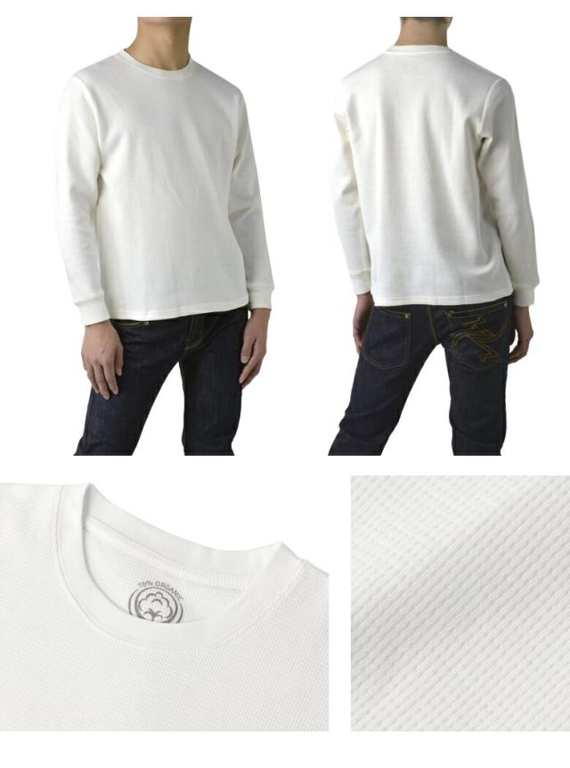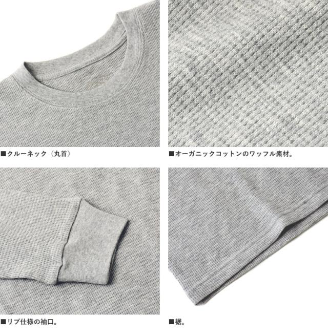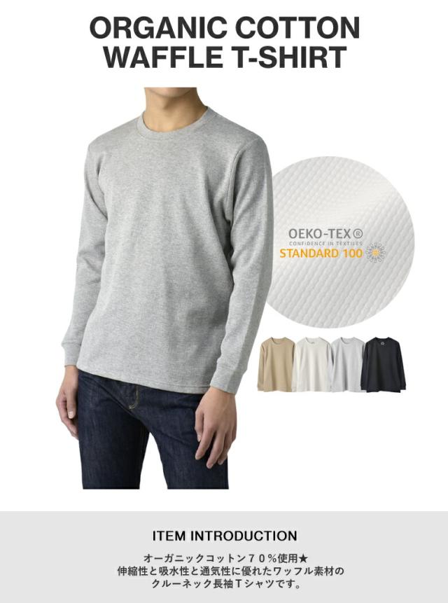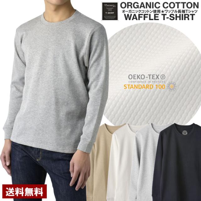 メンズ オーガニックコットン ワッフル 長袖Tシャツ クルーネック 丸首 サーマル カットソー トップス 綿100% 伸縮性 吸水性 通気性【E1K】【パケ1】