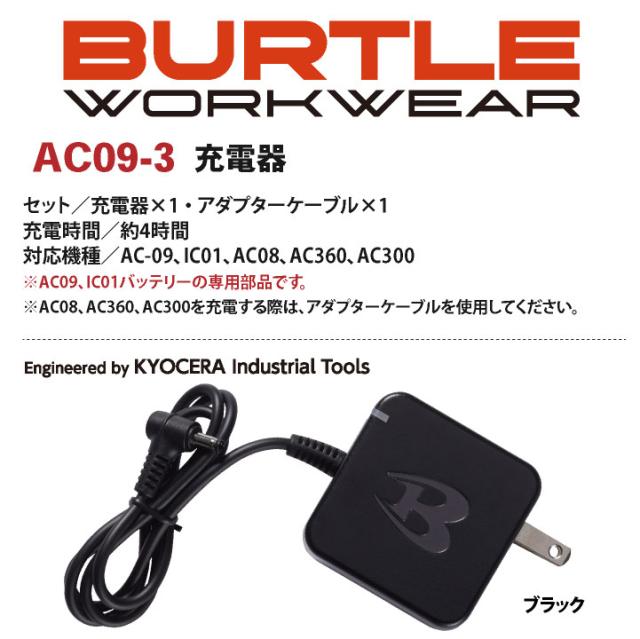 バートル 空調作業服 AC09用充電器 エアークラフト AIRCRAFT 春夏 メンズ レディース 仕事服 おしゃれ 空調ウェア 涼しい かっこいい BURTLE bt-ac09-3