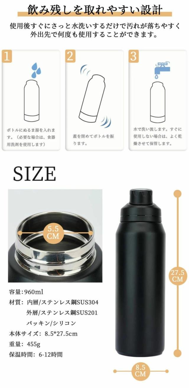 水筒 ボトル スポーツボトル 960ml 大容量 マグボトル 水筒 おしゃれ 真空 ボトル ステンレスボトル 魔法瓶 保冷 直飲み 滑り止め 水筒 キッズ 子供 大人 マイボトル マイ水筒 保温ポット 登山 運動会 自転車 アウトドア