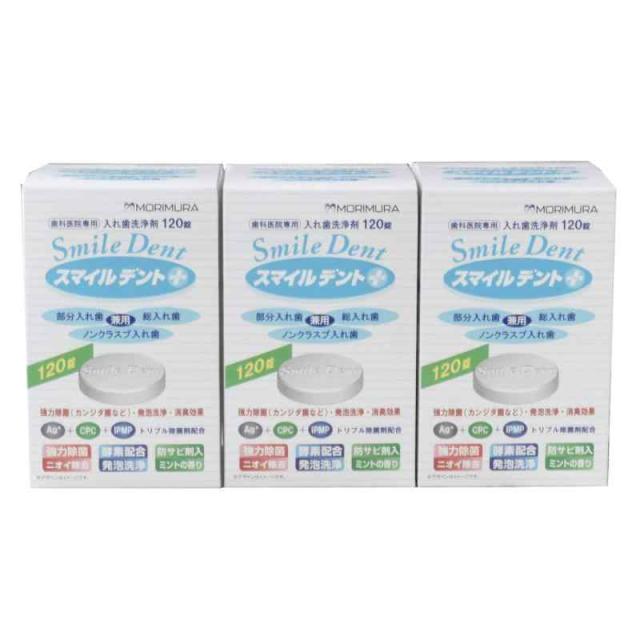 モリムラ スマイルデントプラス 120錠入 3箱 セット 入れ歯洗浄剤 総入れ歯 部分入れ歯 ノンクラスプ入れ歯 兼用 Ag+
