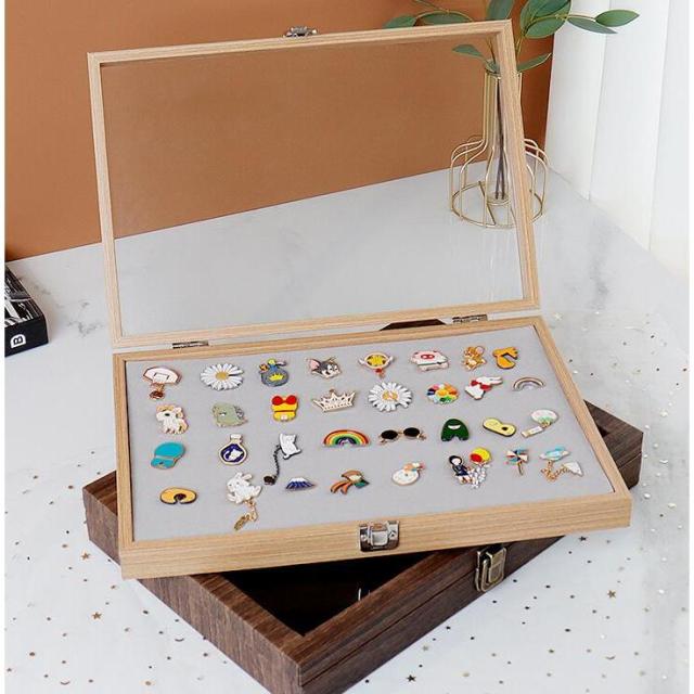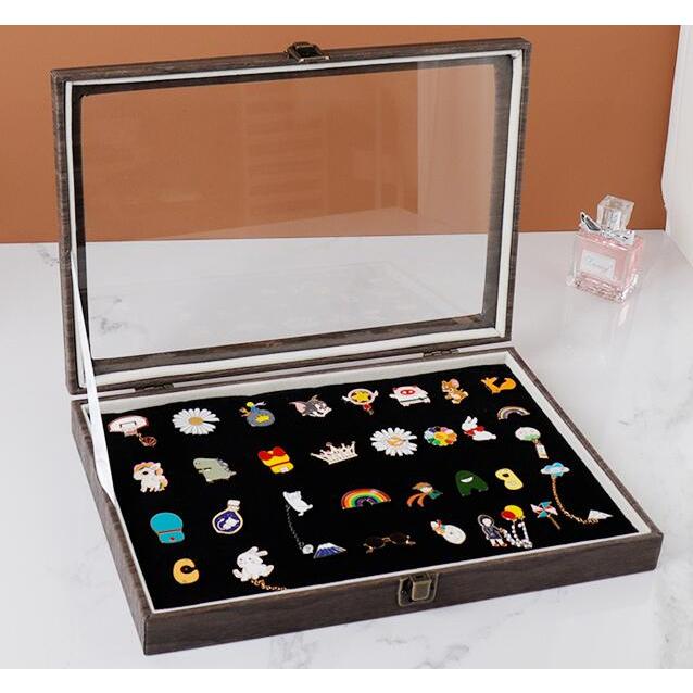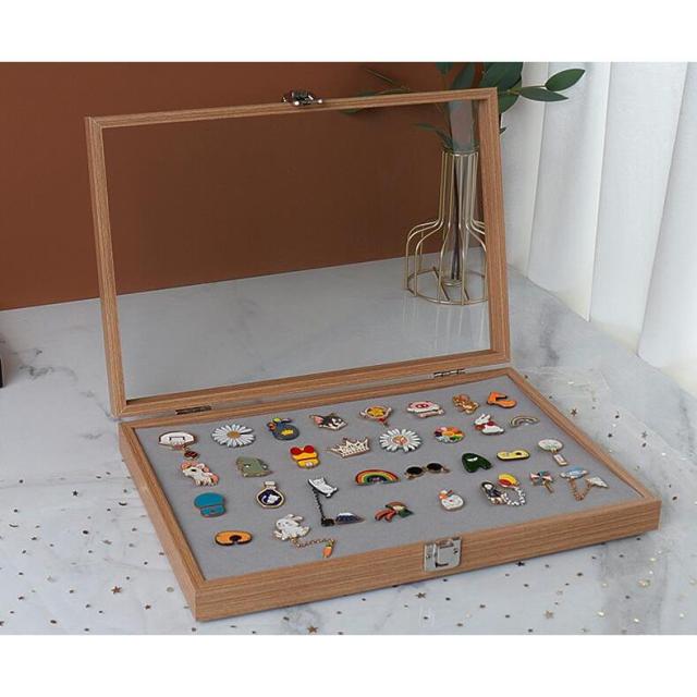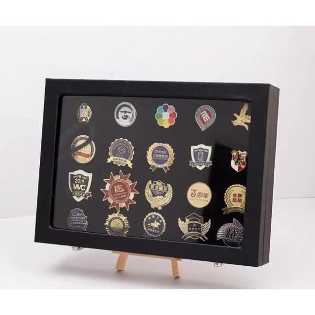 ピンバッジ ケース 透明窓木製ピンディスプレイケース ピン缶バッジ 収納ケース エナメルピンミリタリーバッジメダルディスプレイケース ピンズフレーム 収納可