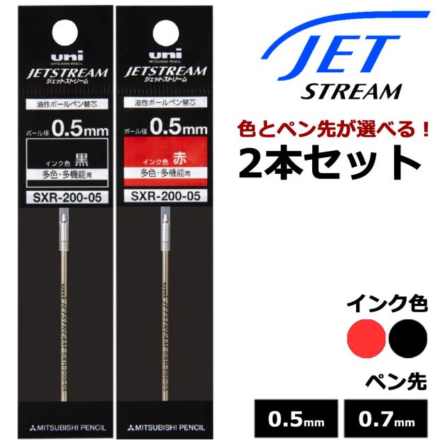 三菱鉛筆(UNI) ボールペン替芯 ジェットストリームインク SXR-200 選べる 2本セット ブラック レッド 0.5mm 0.7mm