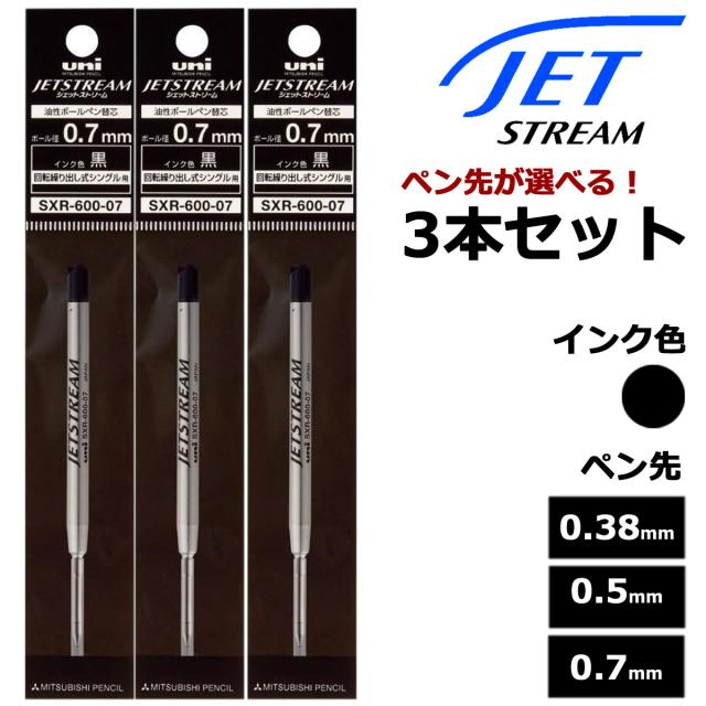 三菱鉛筆(UNI) ボールペン替芯 ジェットストリームインク SXR-600 選べる 3本セット ブラック 0.38/0.5/0.7mm パーカー互換性