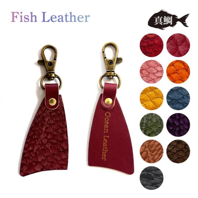 フィレ型キーホルダー フィッシュレザー/マダイ オーシャンレザーブランド fish leather 真鯛 魚皮を魚革に ギフトBOX入り 誕生日 記念日 就職祝 入学卒業 学業お守り 長寿 サステナブル ラッキーアイテム