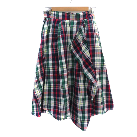 【中古】グローバルワーク フレアスカート ギャザースカート ロング丈 チェック柄 リネン混 M ネイビー レディース
