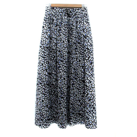 【中古】ノーク N.O.R.C NORC フレアスカート ロング丈 マキシ丈 ヒョウ柄 レオパード柄 3 L マルチカラー 黒 ブラック /HO19 レディース