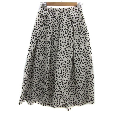 【中古】ドゥアルシーヴ プリーツスカート マキシ丈 ロング丈 ダルメシアン柄 M アイボリー 黒 ブラック レディース