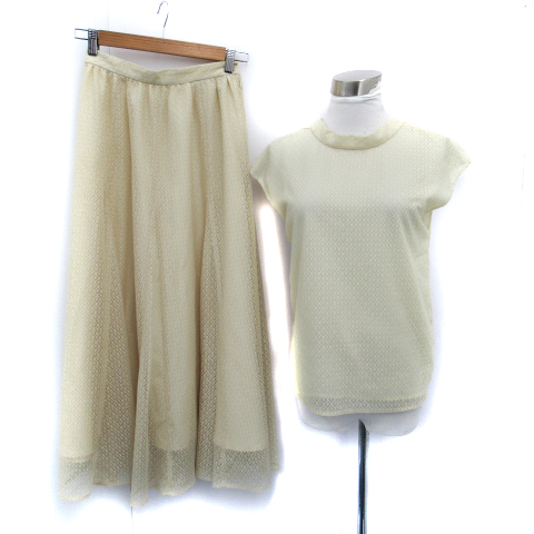 【中古】テチチ Te chichi セットアップ 上下 カットソー シアー フレアスカート ロング丈 上F 下M クリーム色