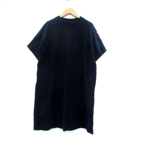 【中古】ミルクフェド MILKFED. ワンピース クルーネック 半袖 ひざ丈 プリント ONE 紺 ネイビー ピンク