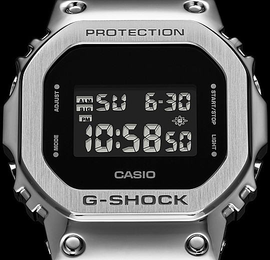 タフネスを追求し進化を続けるG-SHOCKのスクエアデザイン「5600シリーズ」から、メタル素材を採用したモデルです。