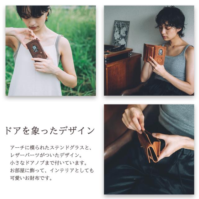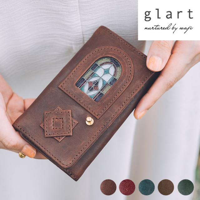 【レビュー投稿で+5%還元】グラート 三つ折り財布 財布 三つ折り ミニ財布 ミニウォレット ステンドグラス 小さめ コンパクト メンズ レディース 日本製 H0212 glart ガラス モストロレザー 牛革 本革 レザー 綺麗 おしゃれ アンティーク シンプル