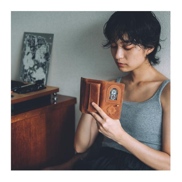 持ち運ぶオブジェのような、ステンドグラス調のリアルガラスと本革の融合させた作品。アンティークなドアを象ったデザイン。オイルを含んだ牛革は、劇的な経年変化をもたらし、お使いいただいた方だけのヴィンテージドアへと変化します。革や芯材などは類似の商品と比較し、倍近い種類とパーツ数。組み立てにおいては、微細な誤差で表情が大きく変わってしまう為、限られた熟練の職人のみが生み出すことのできる希少価値の高い作品です。完成までに約2年をかけた、最高傑作です。