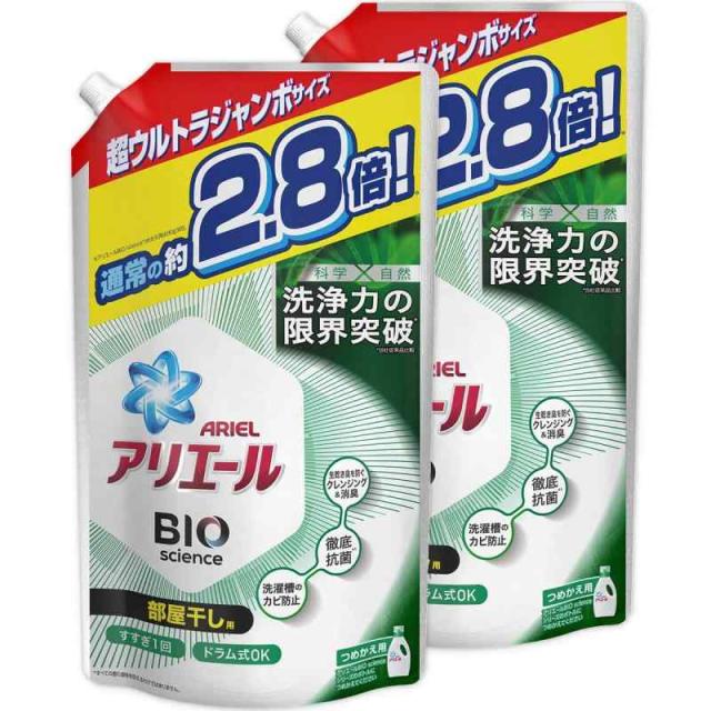 【まとめ買い】 アリエール バイオサイエンス 部屋干し 洗濯洗剤 液体 抗菌&菌のエサまで除去 詰め替え 超ウルトラジャンボ 約2.8倍 (1900g) × 2個