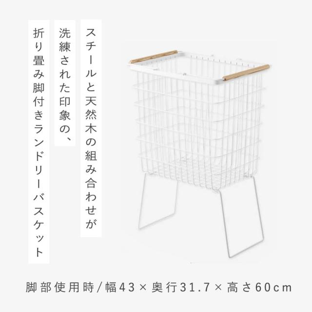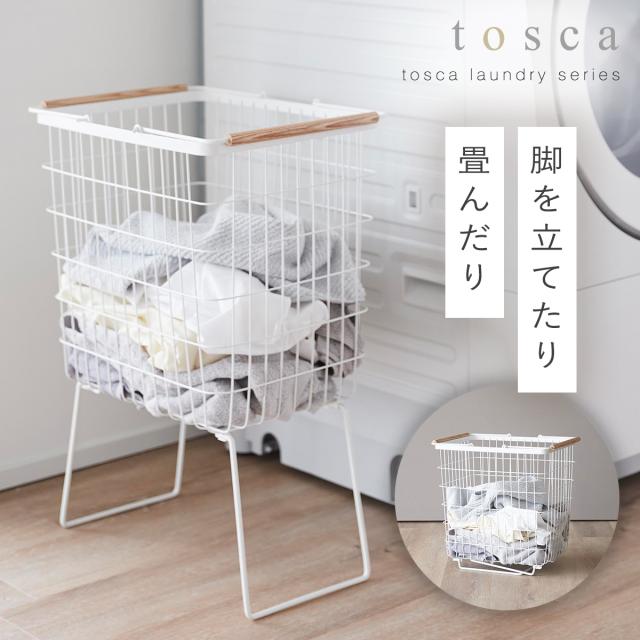 折り畳み脚付きランドリーバスケット トスカ ホワイト 山崎実業 tosca ランドリーバスケット 脚付 折りたたみ おしゃれ 木製 白 1464