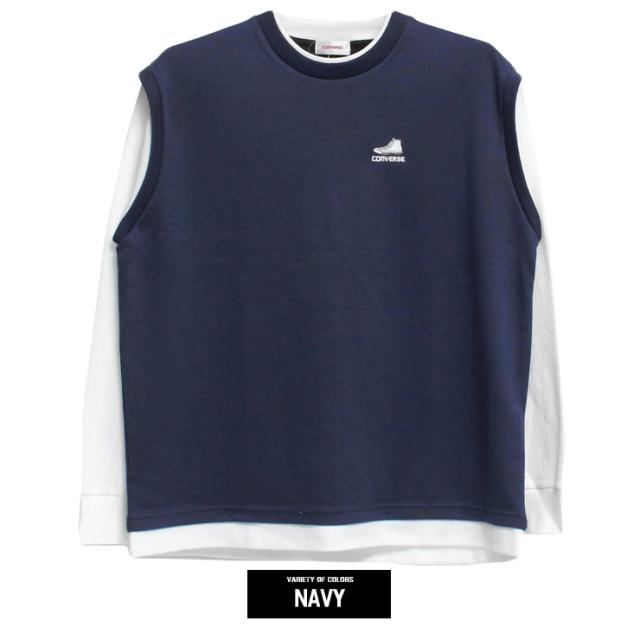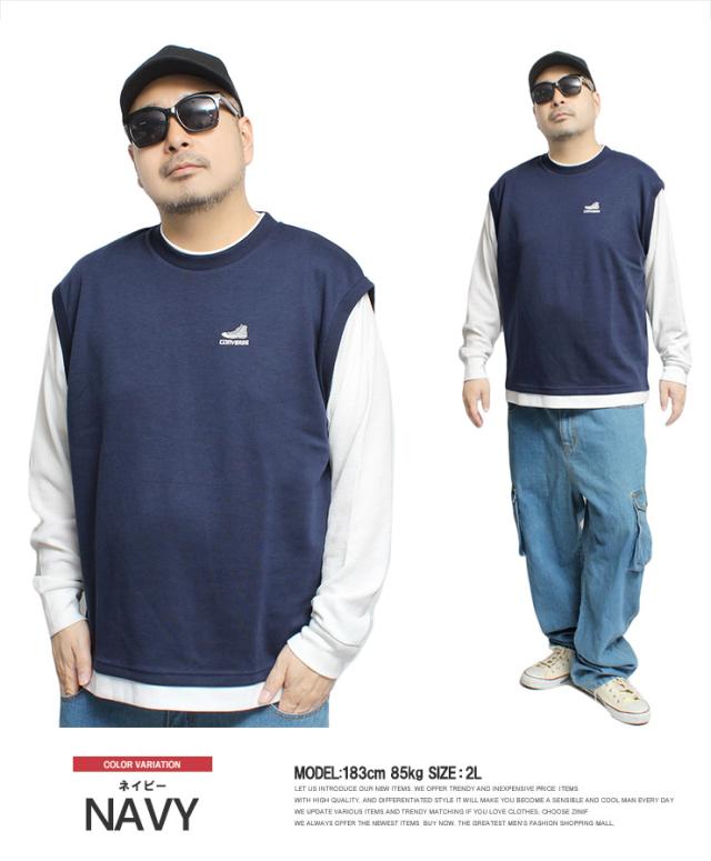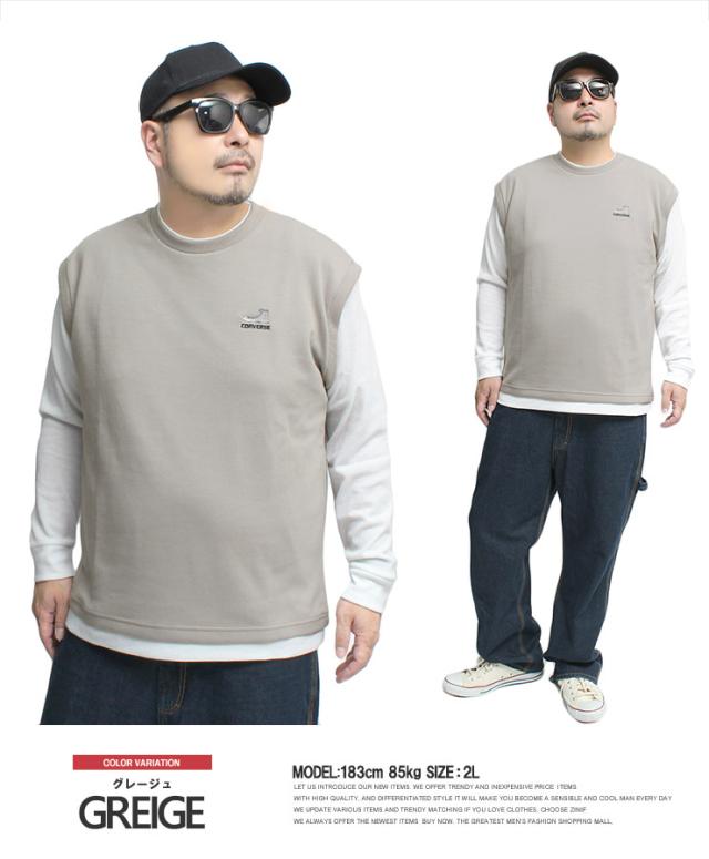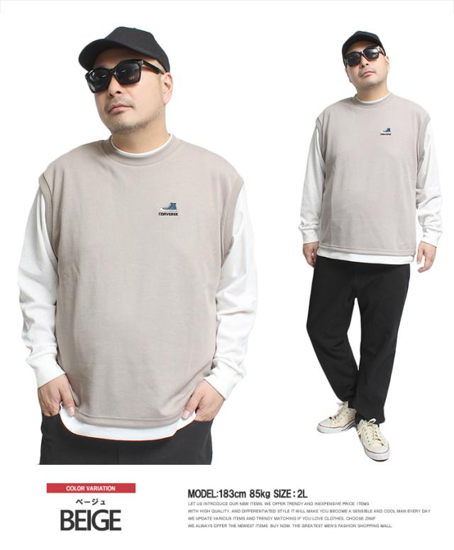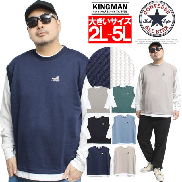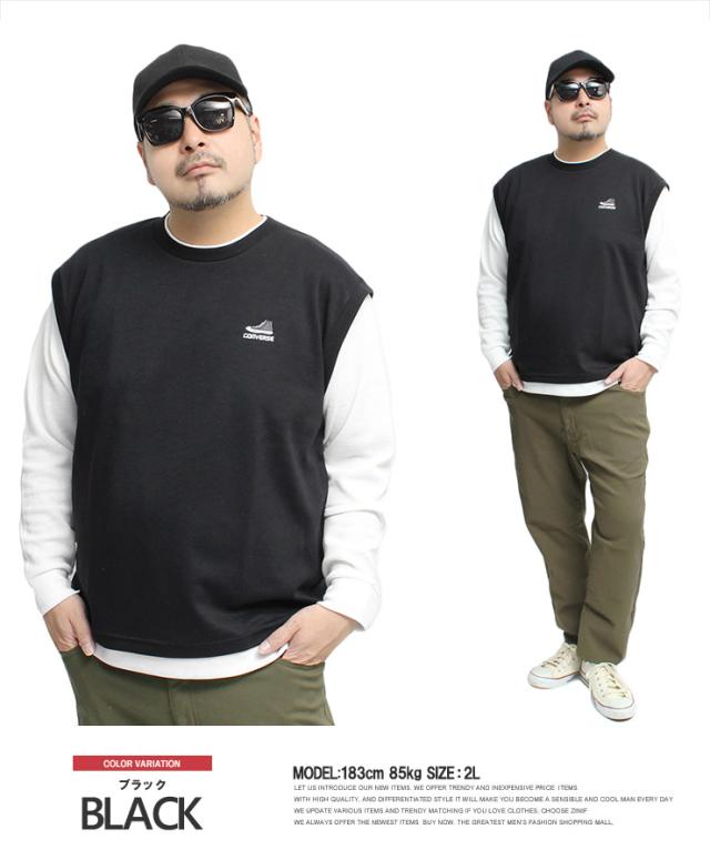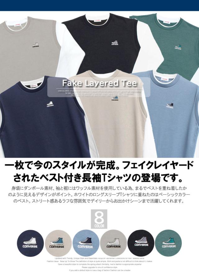 メール便で送料無料 コンバース(CONVERSE) ベスト 長袖 Tシャツ メンズ 大きいサイズ ダンボール ワッフル素材 フェイクレイヤード クルーネック カットソー トップス ノースリーブ 長袖Tシャツ ジレ 無地 ホワイト 白 ロングTシャツ ロンT ストリート系 ワークマン プラス