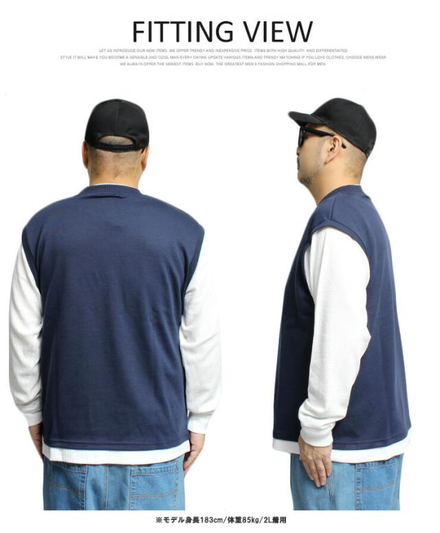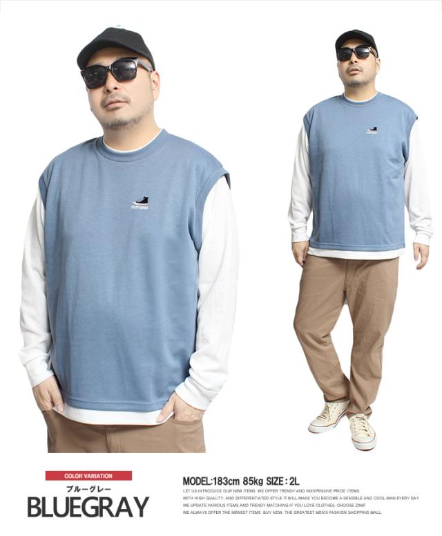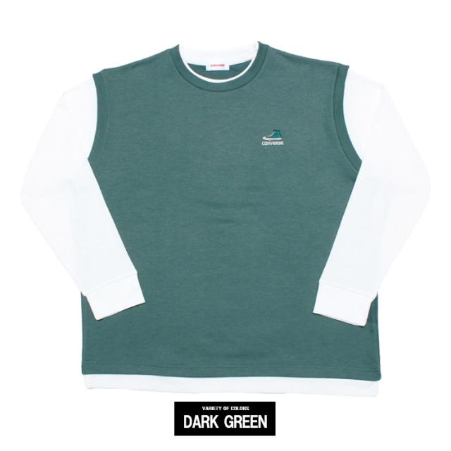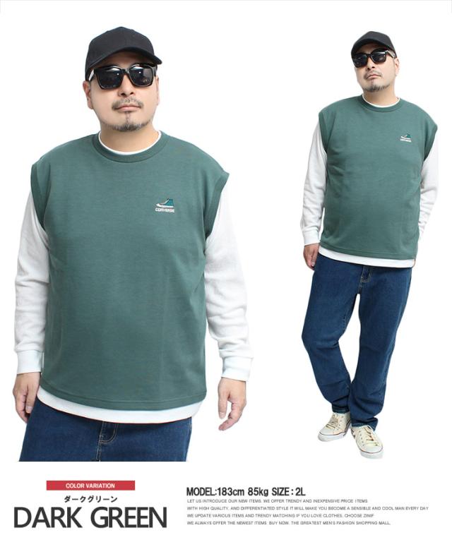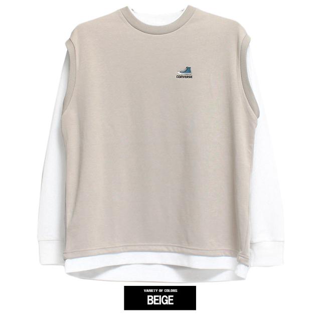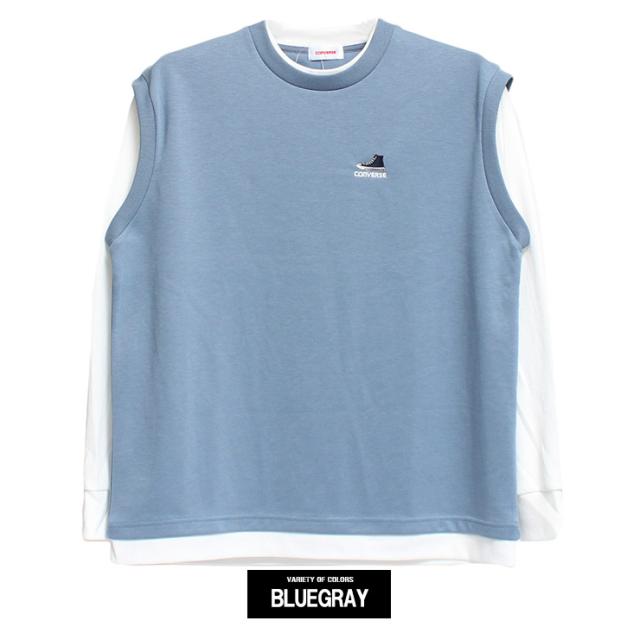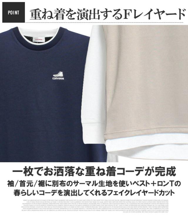 メール便で送料無料 コンバース(CONVERSE) ベスト 長袖 Tシャツ メンズ 大きいサイズ ダンボール ワッフル素材 フェイクレイヤード クルーネック カットソー トップス ノースリーブ 長袖Tシャツ ジレ 無地 ホワイト 白 ロングTシャツ ロンT ストリート系 ワークマン プラス