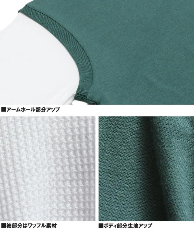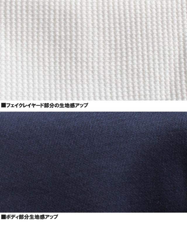 | 説明 | 一枚で今のスタイルが表現できる、フェイクレイヤードされたベスト付き長袖Tシャツの登場です。 身頃にダンボール素材、袖と裾にはワッフル素材を使用している為、まるでベストを重ね着したかのように見えるデザインがポイント。 ホワイトのロングスリーブTシャツに重ねたのはベーシックカラーのベスト。 ストリート感あるラフな雰囲気でデイリーからお出かけシーンまで活躍してくれます。 |