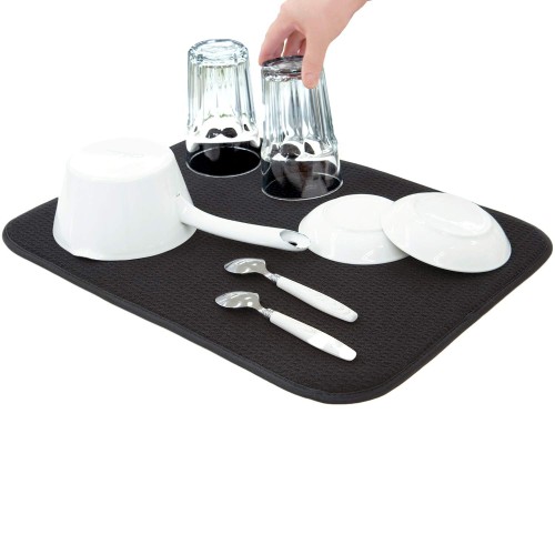 水切りマット 抗菌 速乾吸水マット 食器乾燥マット 丸めて収納 キッチン マイクロファイバー 水切り マット Sanleaves 40x45cm ブラック